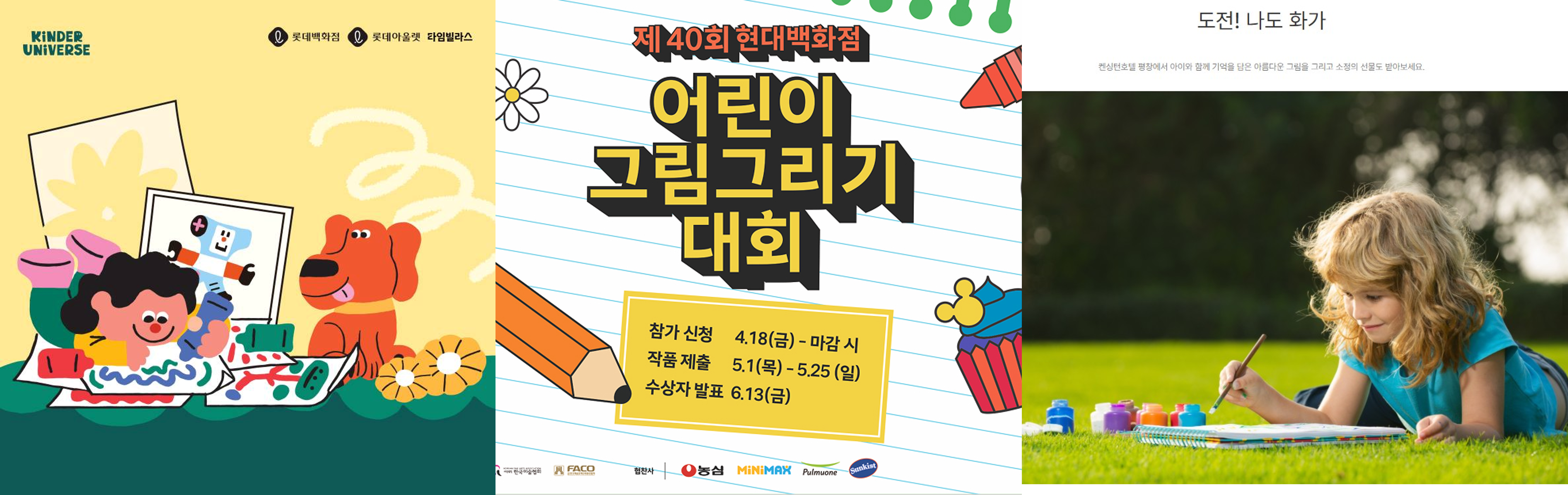 롯데백화점 외에도 현대백화점, 이랜드 그룹도 아이들을 위한 그림 대회를 꾸준히 운영 중입니다.